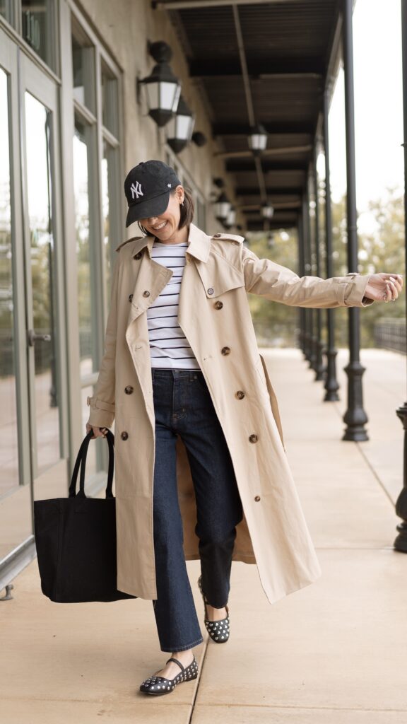 I included a trench coat in the checklist for my European Travel Capsule Wardrobe for Fall. This one is lightweight and the perfect length for dresses or jeans. I took this warmer style with me to Paris during shoulder season last year and wore it every day!