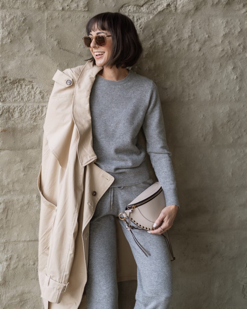 These are my favorite sweatpants. The look and feel so luxe. This winter, I’ve been wearing them as part of my casual capsule wardrobe, paired with the matching quarter-zip pullover.