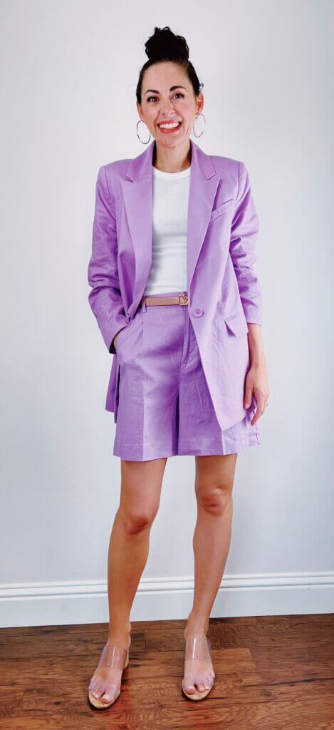 This is the best blazer under $100 right now. The linen blend version comes in 6 colors. I just bought the lavender with matching shorts and lace bralette.