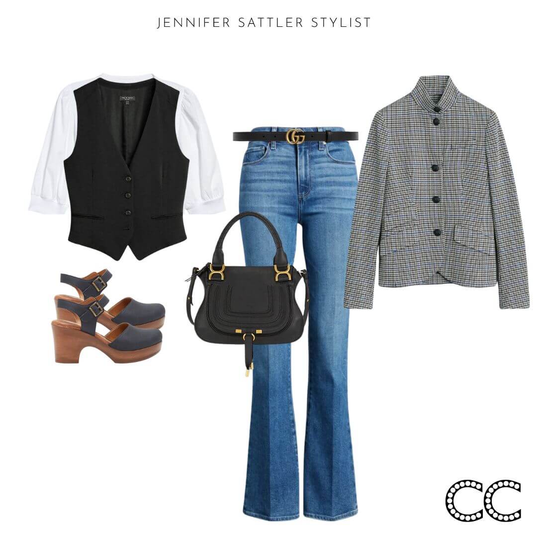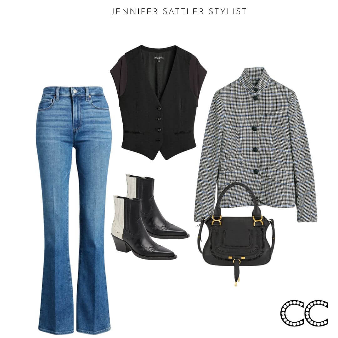 Because every new piece on my capsule checklists is a style that goes with ALL the other styles, you can pick the ones that match your look the best. Use the check blazer or vest in the First Look at Fall Capsule to determine your color story.