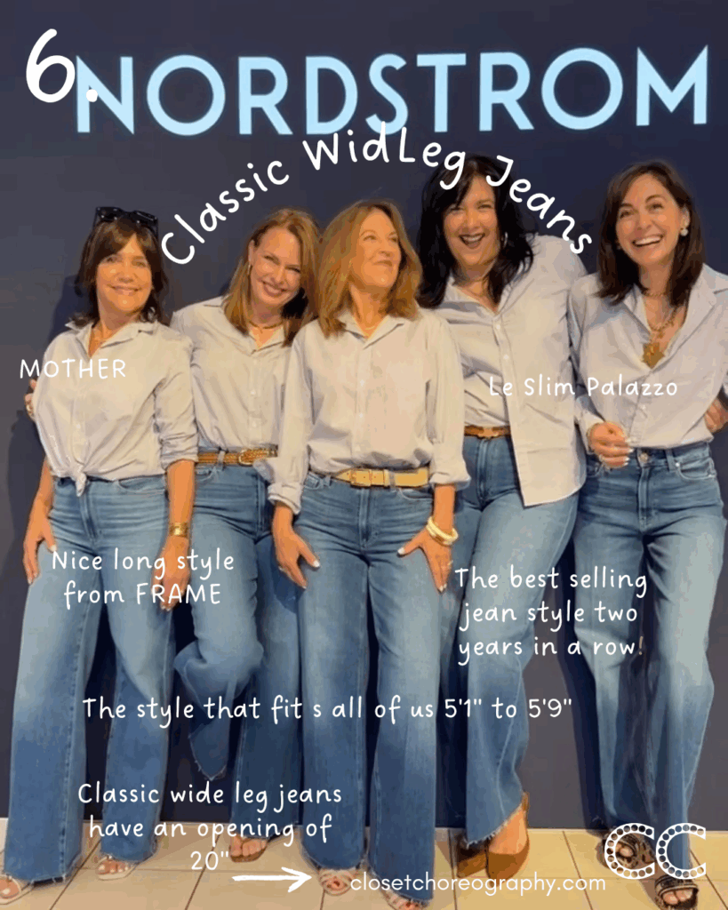 These 4 classic wide leg jeans that sit close to your belly button and have about a 20″ opening are made by all your favorite denim brands and you can get on the Nordstrom Anniversary Sale.