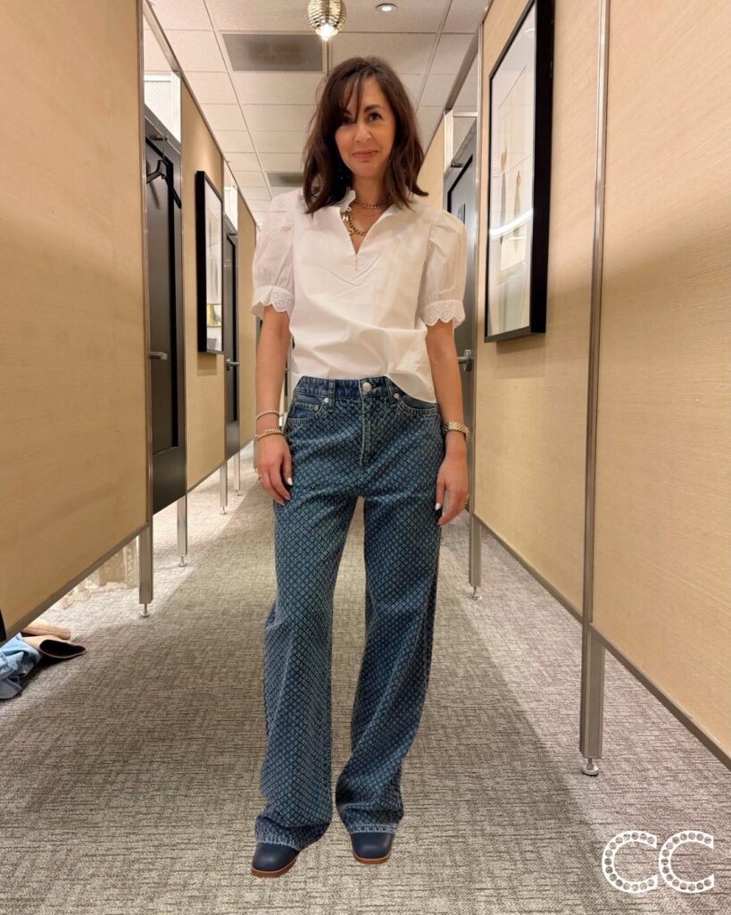 The Veronica Beard ivory jeans on the Anniversary Sale this year don’t fit well, but this barrel leg style I’m wearing does, and it just got marked down. If you are between sizes, I’d size down in them. I also love the fit on this straight leg style, you can cuff or leave long.