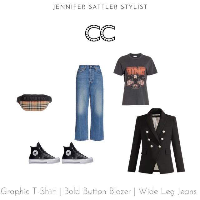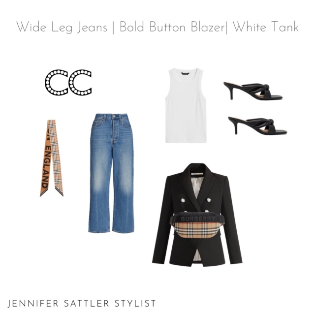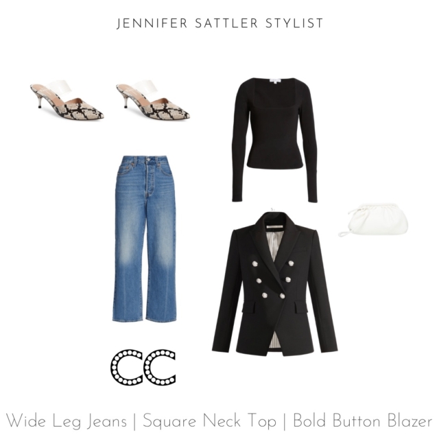 Wide-leg jeans are going to be the most popular jean style this year. Balance the higher rise with a shorter top and waist-defining pieces like a belt bag or blazer. Keep your leg line long with pointed-toe shoes or heels. Get more shoe suggestions in my post How to Style High Waisted Wide Leg Jeans.