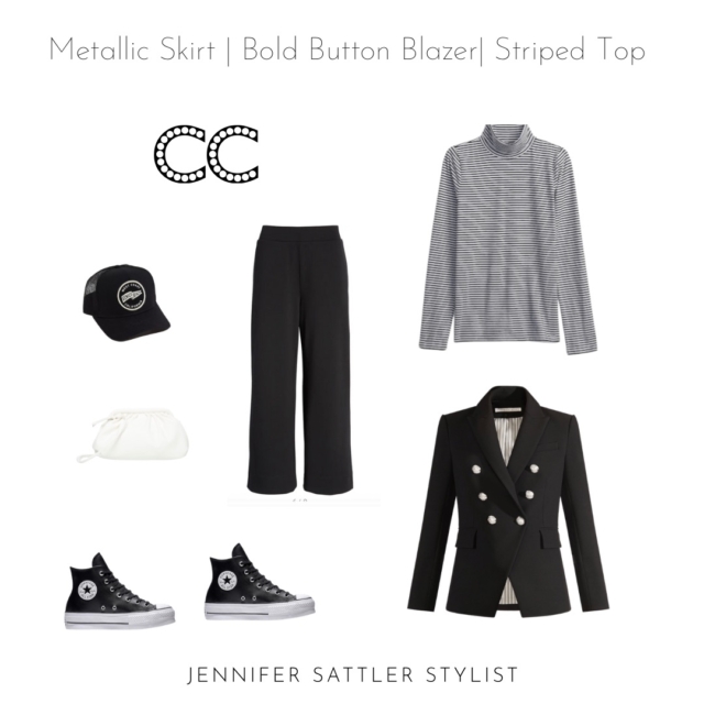 Instantly create a flattering silhouette and add style to your look with a bold button blazer. A double-breasted blazer has been my blog’s bestseller and fan favorite. Makeover tons of outfits with this capsule wardrobe game-changer. See how versatile a budget-friendly bold blazer can be HERE.