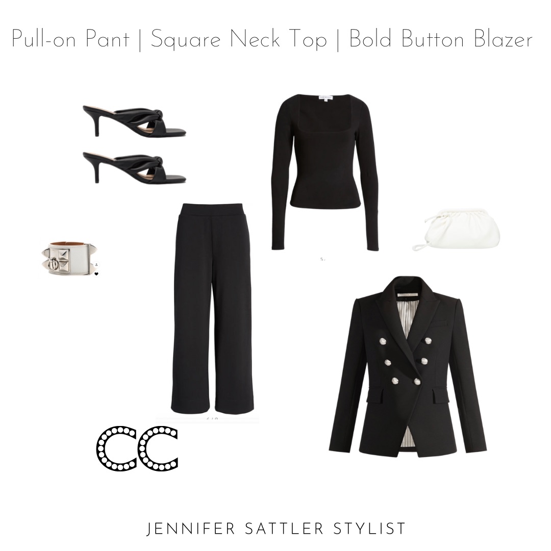 Instantly create a flattering silhouette and add style to your look with a bold button blazer. A double-breasted blazer has been my blog’s bestseller and fan favorite. Makeover tons of outfits with this capsule wardrobe game-changer. See how versatile a budget-friendly bold blazer can be HERE.