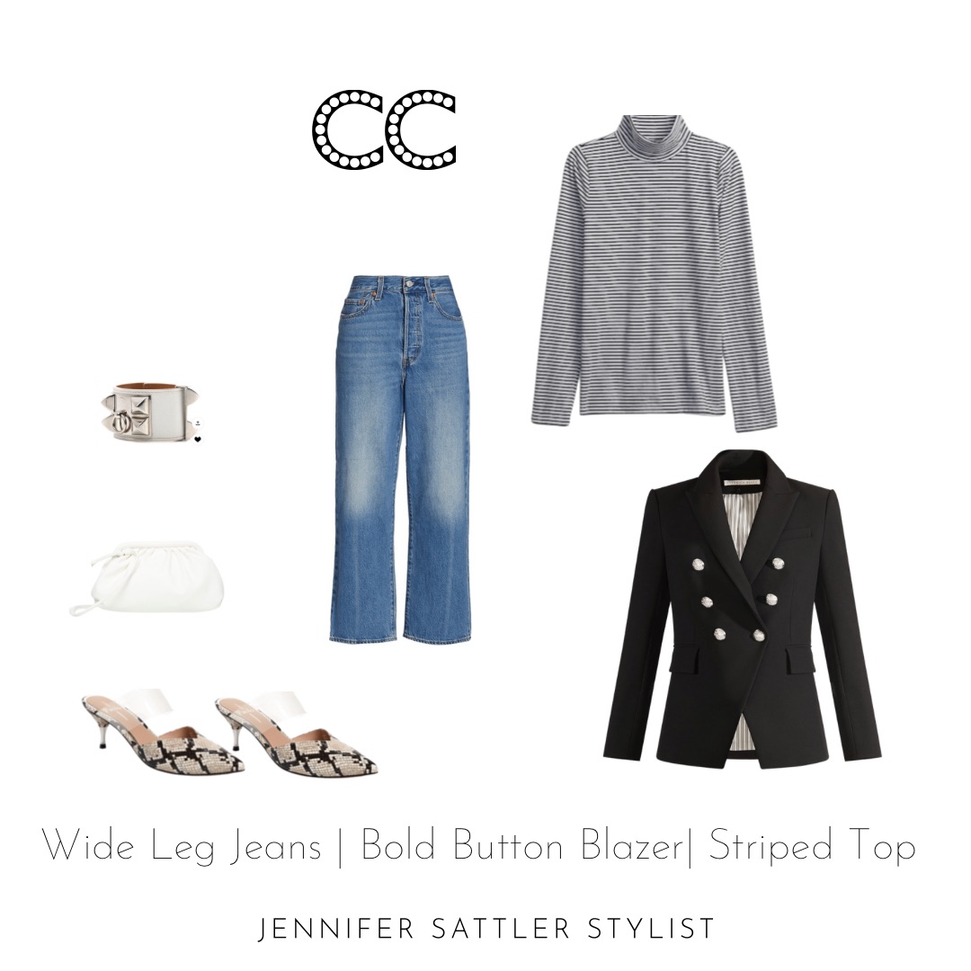 Wide-leg jeans are going to be the most popular jean style this year. Balance the higher rise with a shorter top and waist-defining pieces like a belt bag or blazer. Keep your leg line long with pointed-toe shoes or heels. Get more shoe suggestions in my post How to Style High Waisted Wide Leg Jeans.