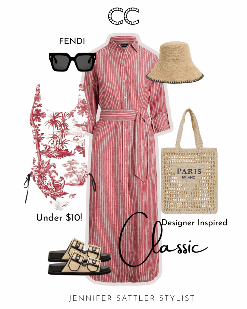 How can a dress be this insanely stylish and insanely practical at the same time? Wear her now over a swimsuit or with a woven belt and layer her this fall with square scarf and suede accessories.