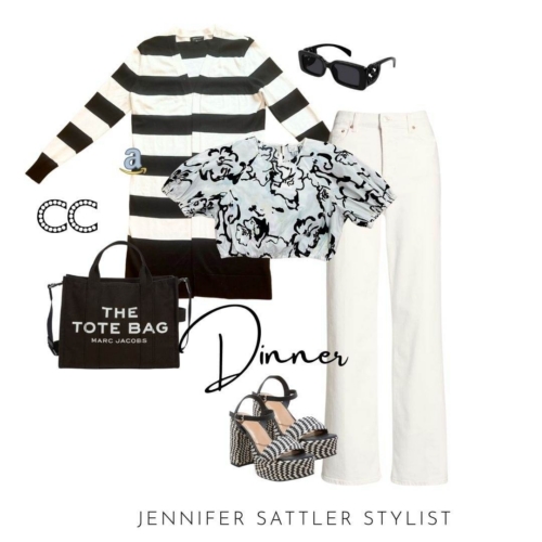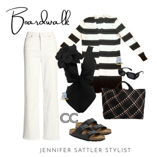 Most of you love to travel but hate packing. Good news, I love building capsule wardrobes that easily mix and match to make a variety of different outfits with just a few pieces. The sourcing and styling have been done so you can use the short checklists and lookbooks I make for you to customize your capsule. I’m guessing you normally pack a bunch of black and white pieces because they all “match”. This isn’t a bad idea, but the next time your packing, try this take on a black and white vacation capsule wardrobe. It’s fashionable, fun, and easy to put together with a high-low mix of brands.