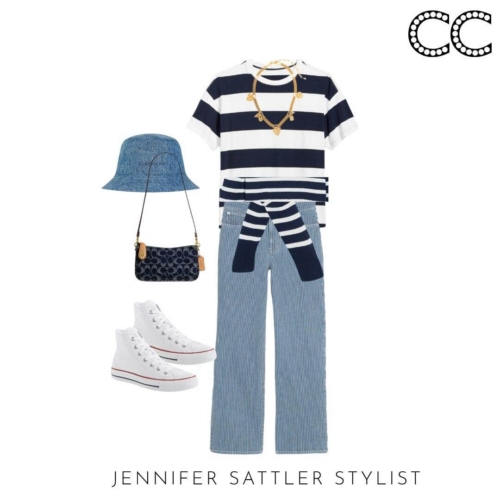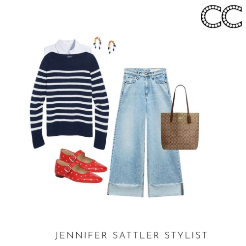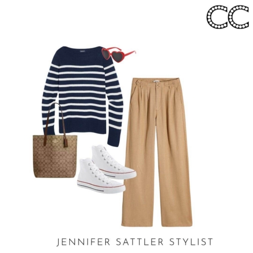 This staple stands alone, but it also does double duty as a scarf over your shoulders when you’re wearing all of the other pieces in this capsule. A striped sweater will always be chic and fashionable so don’t be afraid to invest in a nice one.