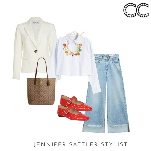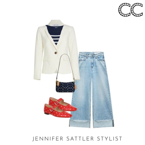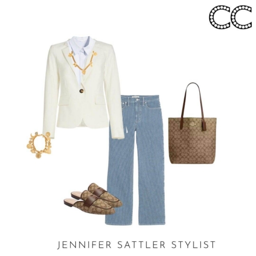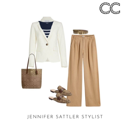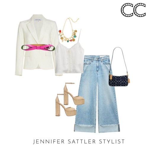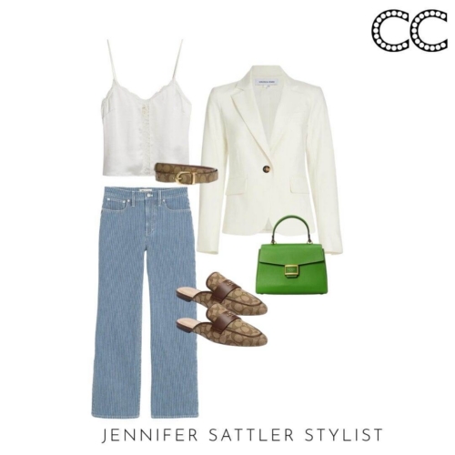 Choose a hue that’s best for you and you’ll wear this styling hero on repeat. A variety of styles will work with this capsule. In general a shorter style will look the best with dresses and wide leg jeans and pants. This is a great time of year to add an inexpensive linen style. I just found this year round Veronica Beard ivory blazer with dickey zipper that would make a great wardrobe staple.