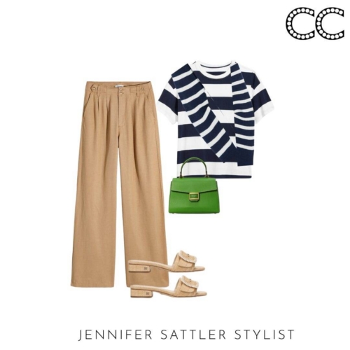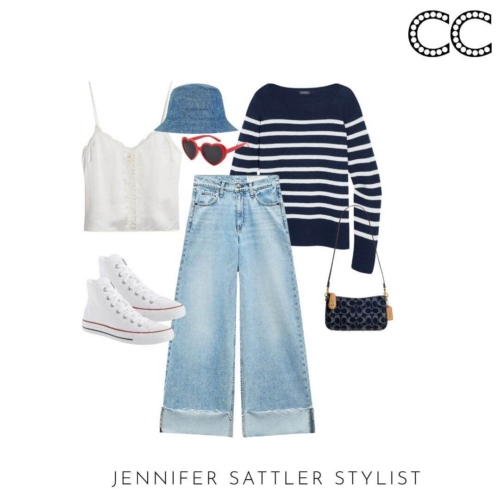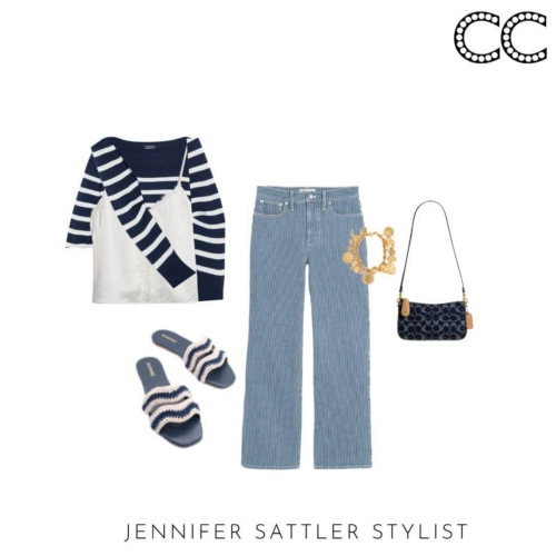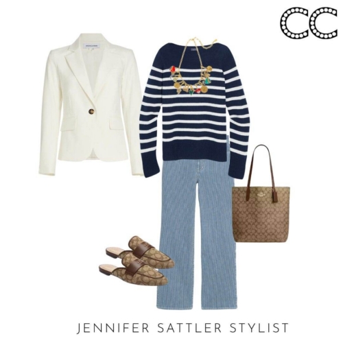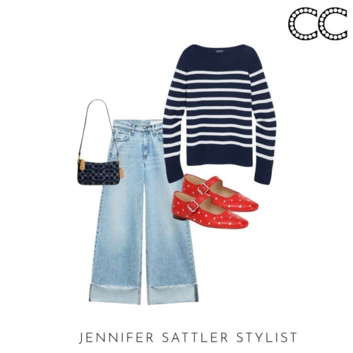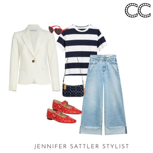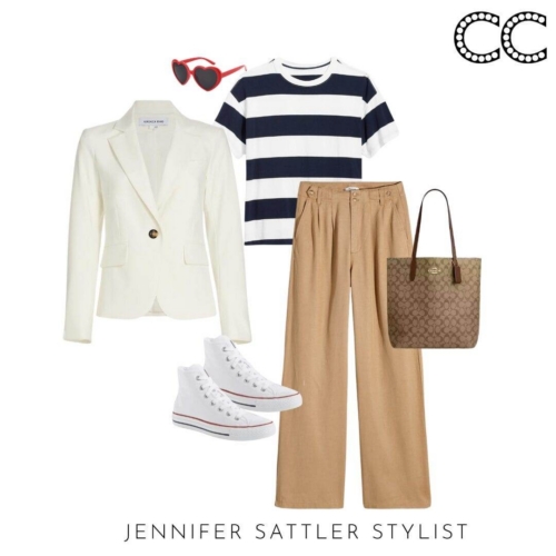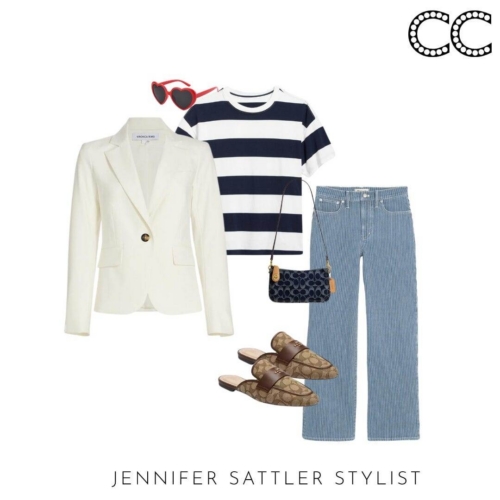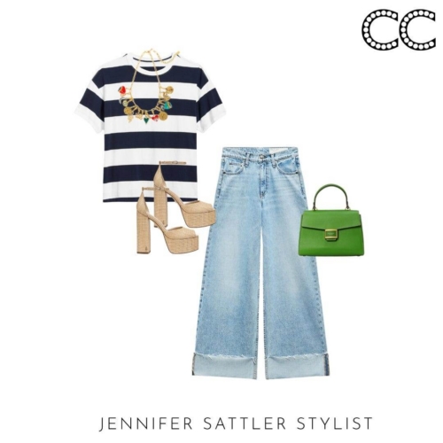 I admit I have so many black and white striped tops that they have their section in my closet. This capsule works with many different types of stripes. If you’re tiny on top try a large ruby style stripe. Worried you’ll look wide? Try an open neckline or stripes that aren’t evenly spaced.