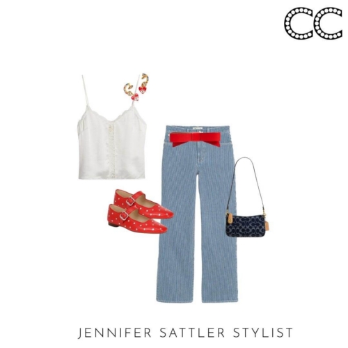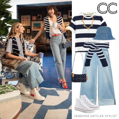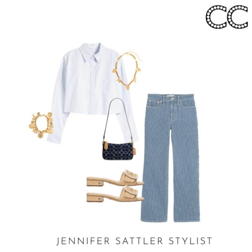 Noticeably 90s brand accessories are making a comeback. Brands like Coach, Kate Spade, Guess, Longchamp, and Prada are bringing back some of their signature styles. These brand’s monogram prints and playful colors look great with blue and white. You’ll also notice a jewelry nod to the same moment in time. Charm bracelets and necklaces are back.