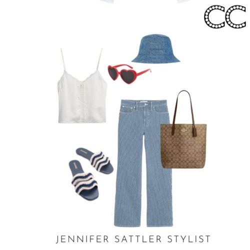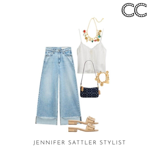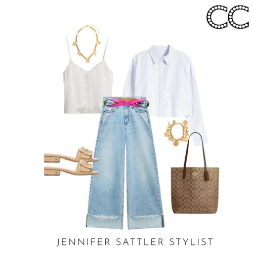 I often recommend a camisole top for layering. They are pretty, feminine, and kiss but don’t cling to the body. This season there are several guazy cotton styles that have a relaxed vaca vibe. If you like a silkier camisole top, look for a style with adjustable straps.