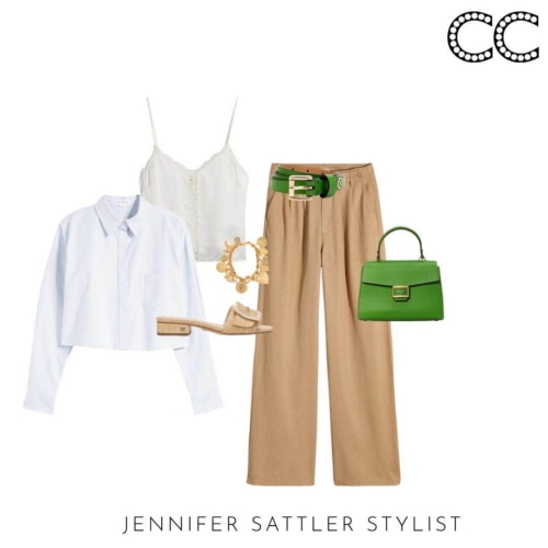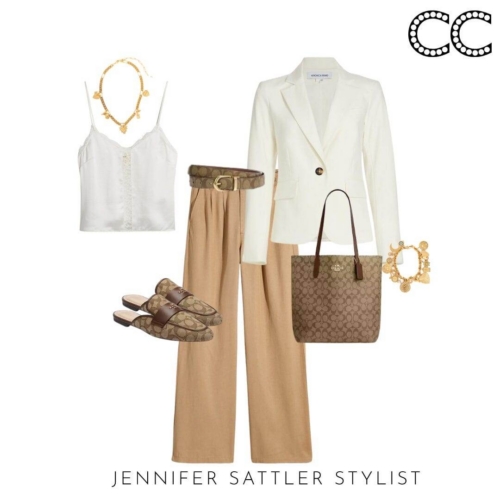 There are so many versions of this capsule you can customize to match your style and fit your the best. This set with a cotton camisole top, white linen blazer, and long khaki pants is from Nordstrom. Scroll through the lookbook below to see all of the outfits you can make once you have each of the items on the checklist.
