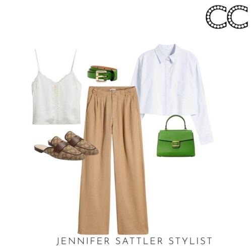 I hope my jeans don’t get jealous because I’m bringing this basic back. Khaki pants can be dressed up for work with a blazer or down with your favorite sneakers. Wide leg styles are the most flattering and work the best with the other pieces in this capsule.