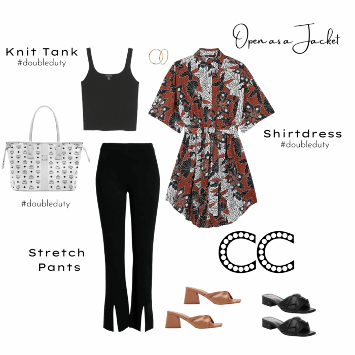 You can add a classic shirtdress to dress outfits that will make you want to give up pants I shared here. Not only can this dress do double duty as a tunic over pants, but unbuttoned it becomes a triple threat as a jacket.