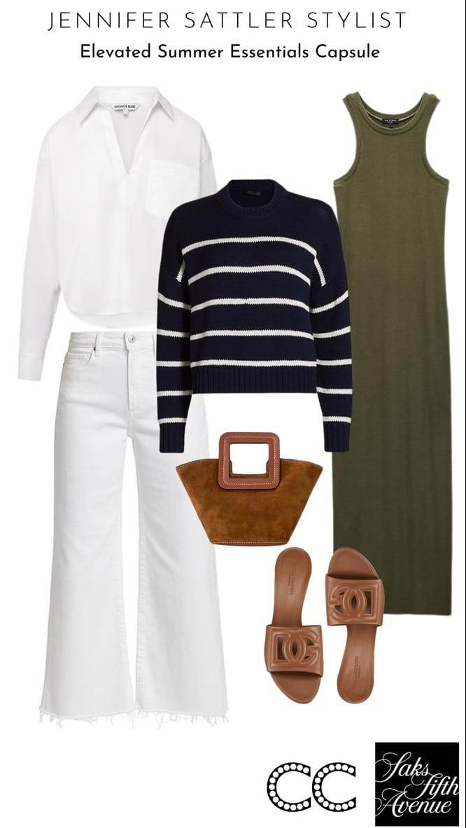 I swear I don’t need anything else this summer because I just went shopping at Saks and found 6 elevated essentials that mix and match to make a minimalistic summer capsule wardrobe. You can find versions of these summer essentials everywhere, but making a summer capsule with only the best brands makes the biggest difference. I can only begin to tell you how good these fabrications and styles fit and make me feel. Abandon fast fashion for the rest of summer so you can slow down and savor the magic of less is more when it comes to your closet.
