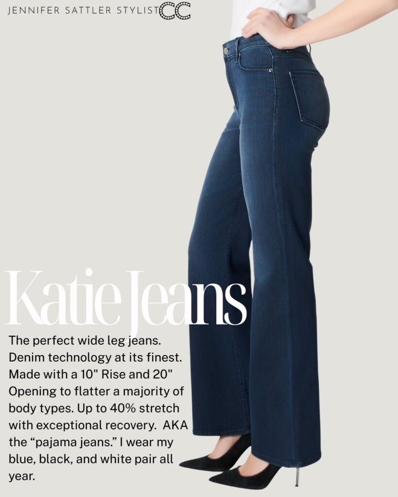 Website descriptions and images don’t accurately show you how something fits or looks on you. During the pandemic, when stores were closed and everyone had to shop online, I knew there had to be an easier way to find jeans that fit and look great, so I created Jen’s Jean Shop. If you can measure your rise and your inseam, you can use those measurements to shop online with confidence. Combine the right style with the right shoes, and I doubt you’ll wear anything but denim.