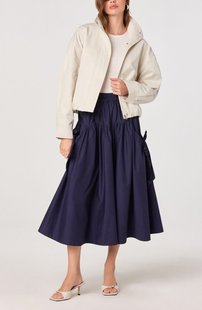 A lightweight khaki bomber that delivers the same versatility as a short trench—but with more attitude. Sporty, streamlined, and refreshingly not another beige coat. The stand collar keeps it modern, the wrinkle-resistant fabric makes it ideal for spring travel, and the silhouette works just as well over denim as it does over a dress.