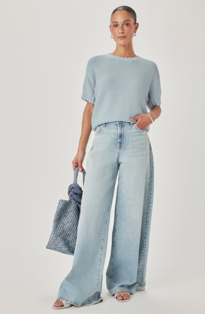 A short-sleeve knit top from Splendid that does what a basic tee can’t. This LA brand has mastered effortless-looking casual closet essentials. She has texture and stands on her own. Think of it as if a blouse and your favorite tee made a baby. She’s easy to layer and strong enough to wear solo.