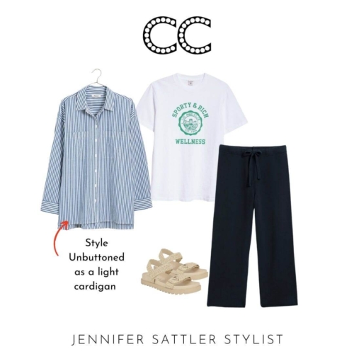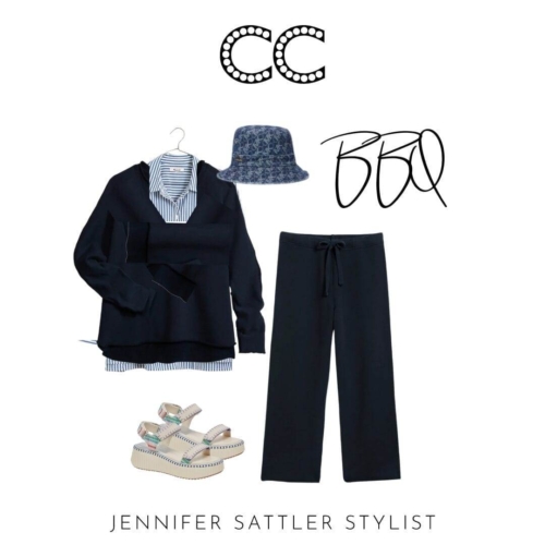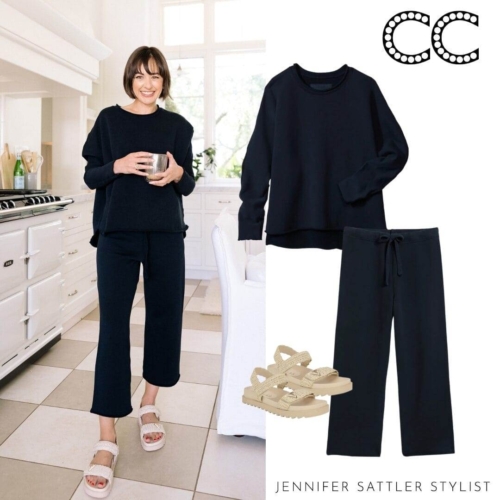 A wide-leg crop pant works around the house and looks good with sandals. You can use the matching pullover for a trip to the grocery store or cool nights and mornings. If you run warm a short sleeve pullover is perfect. You won’t regret upgrading these cozy casual separates with Spanx Air Essentials or my favorites from Frank & Eileen.