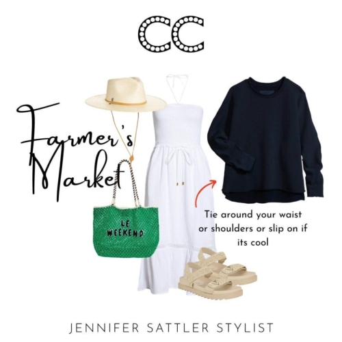 This is my summer fashion hot take, not to be confused with “hot flash” which also plays a role in summer clothes women over 40 will actually wear. Because you spend more time at home than anywhere else and all your travels end up where you started, you’ll get more use out of this homebody inspired capsule wardrobe than any other capsule wardrobe this summer. This multifunctional mix of summer clothes women over 40 love, like a white sundress and trending shorts set proves casual is a style. Like every capsule I create for you, you’ll get my high-low brand mix and list of shopping links for each of the items on my checklist. The checklist includes summer clothes from quality brands that justify why women over 40 should have nice things.