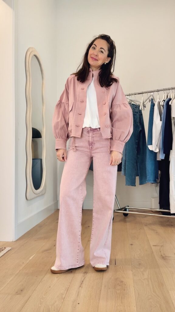The Nordstrom 6 love this brand, and we’ve featured it in several of our Nordstrom 6 Drops. I used the colors in this floral Treasure & Bond blouse to inspire an entire capsule wardrobe that includes this fabulous denim jacket that’s under $100, and there are just a few left.