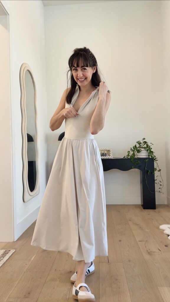 Meet Zella, the Nordstrom brand that blends fashion and function into casual pieces that work for the gym or the grocery store. I love their dresses for travel. They are super lightweight and many, like the one I’m wearing, have bra cups built right in!